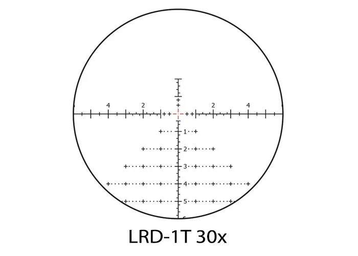 Het verlichte draadkruis van de Delta Optical Stryker HD 4.5-30×56 FFP richtkijker ligt in het eerste beeldvlak, hetgeen betekent dat hij meevergroot bij het inzoomen. Hierdoor blijven de MRAD markeringen bij iedere vergroting correct en om te voorkomen dat de mee vergrootte kruisdraden bij maximale vergroting het doel bedekken is het centrale deel van de draden extra verfijnd uitgevoerd.