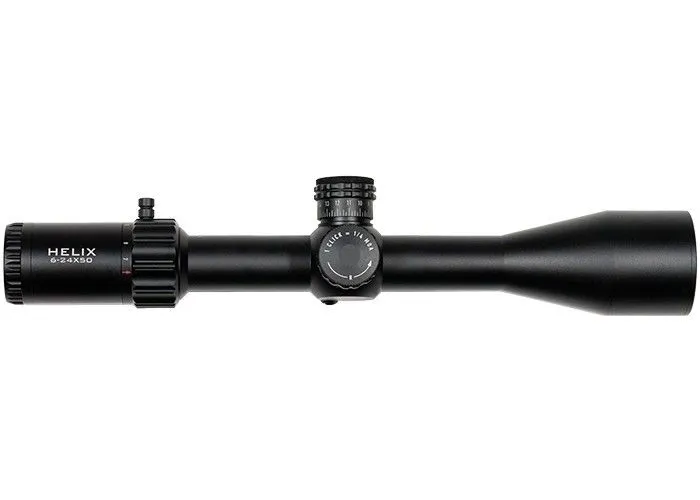 Het heldere glas van de fully multicoated lenzen geeft een goed contrastrijk beeld en met een vergroting van 6 tot 24 maal, is de Element Optics Helix 6-24×50 richtkijker zeer geschikt voor middellange tot lange afstanden. Het draadkruis is gekalibreerd op 24x vergroting, hetgeen hem met slechts een klein beetje rekenwerk ook ideaal maakt bij 12x en 6x vergroting. Om de verstelling te vergemakkelijken is er een throw lever gemonteerd die indien gewenst eenvoudig uitgedraaid kan worden en vervangen door de meegeleverde inbusschroef.