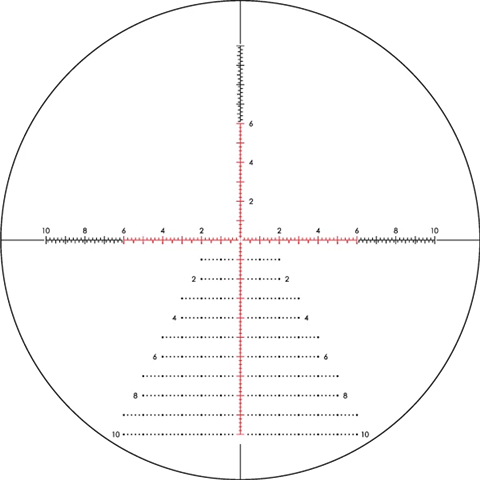 - Het EBR-7D MRAD First Focal Plane dradenkruis is ontworpen om het schieten op lange afstand en de richtmogelijkheden te maximaliseren, en kan gebruikt worden voor het effectief bepalen van afstanden, richtafstanden, windcorrecties, en bewegende doelaanwijzingen. Ultra-precisie laser etsing op het glazen dradenkruis verzekert dat MRAD specificaties binnen de kleinst mogelijke toleranties worden gehouden.
